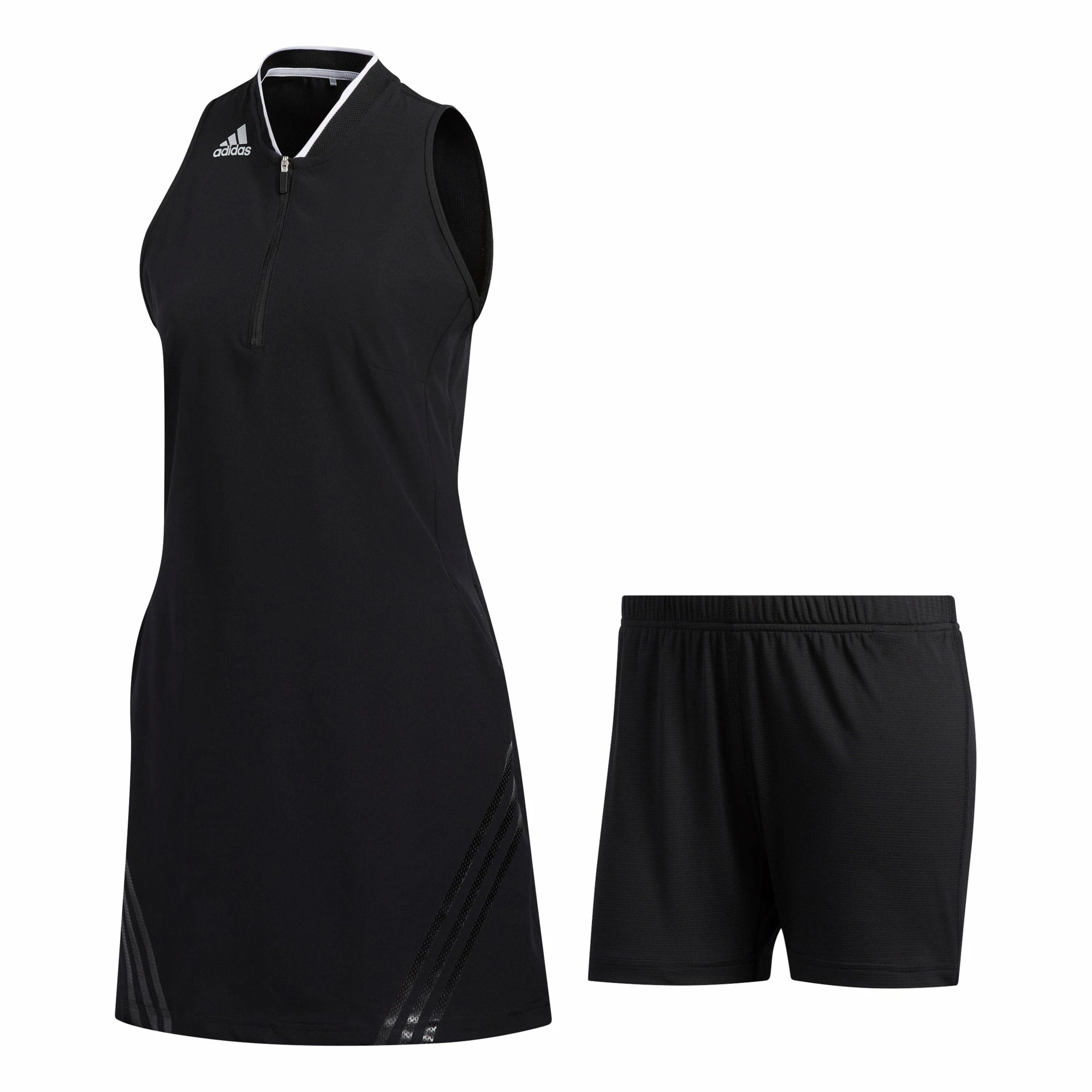 Get classic styling with modern comfort with the Adidas 3-Stripes Sport Golf Dress. This dress is built with a stretchy fabric that will allow you to swing in total comfort and features built-in shorts that will provide additional coverage. There are front pockets and a concealed zip back pocket that provide plenty of storage space for essentials needed to have a great round.