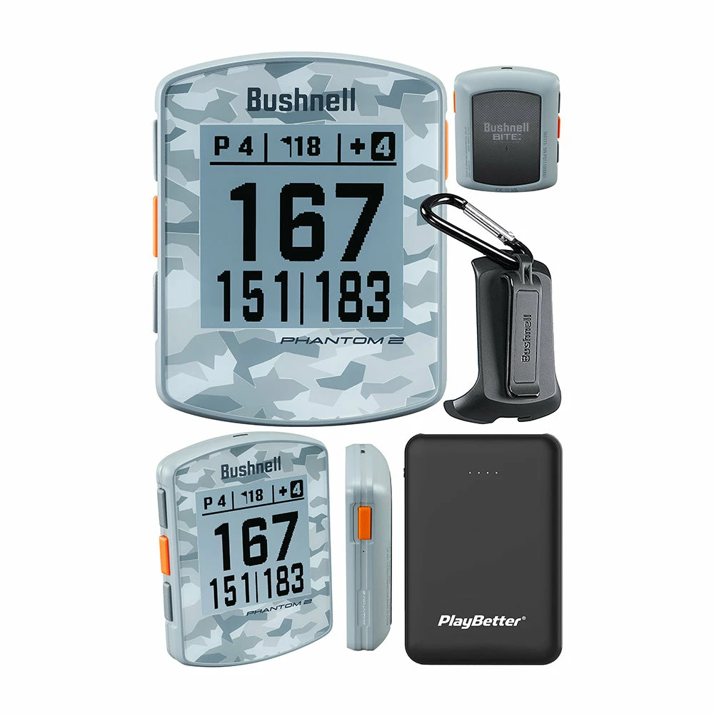 The Bushnell Phantom 2 equips you with the right golf device for your game. This upgraded GPS handheld offers a larger, easy-to-read display for front, center, and back distances. Experience the convenience of a small yet powerful golf GPS that provides more than 38,000 worldwide courses, integrated BITE magnetic mount, and GreenView with movable pin placement.