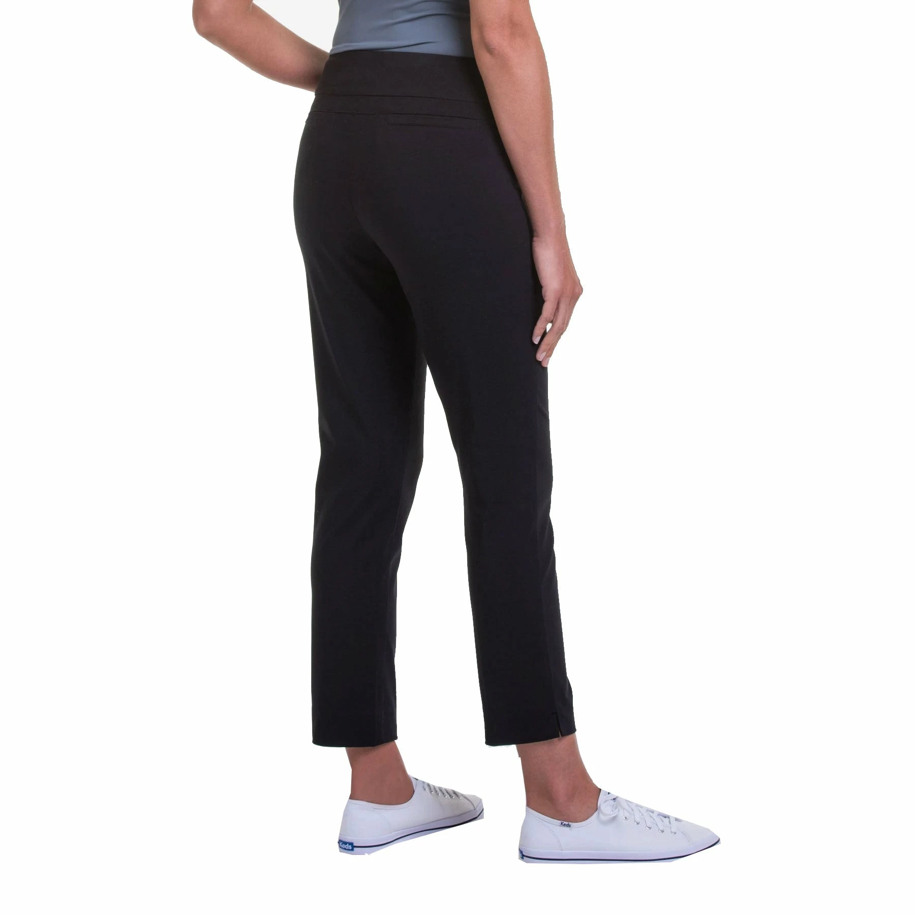 The Fairway & Greene Birdie Womens Golf Pants is a sleek pant that is perfectly tailored for comfort and style on and off the course. This pant is made of a rayon/nylon/spandex blend that provides a soft feel finish and plenty of stretch so you can play with ease. It features a wide comfort stretch waistband, two top loading front pockets with an accent rivet detail, two back pockets and bottom side seam slits for an added touch of style.