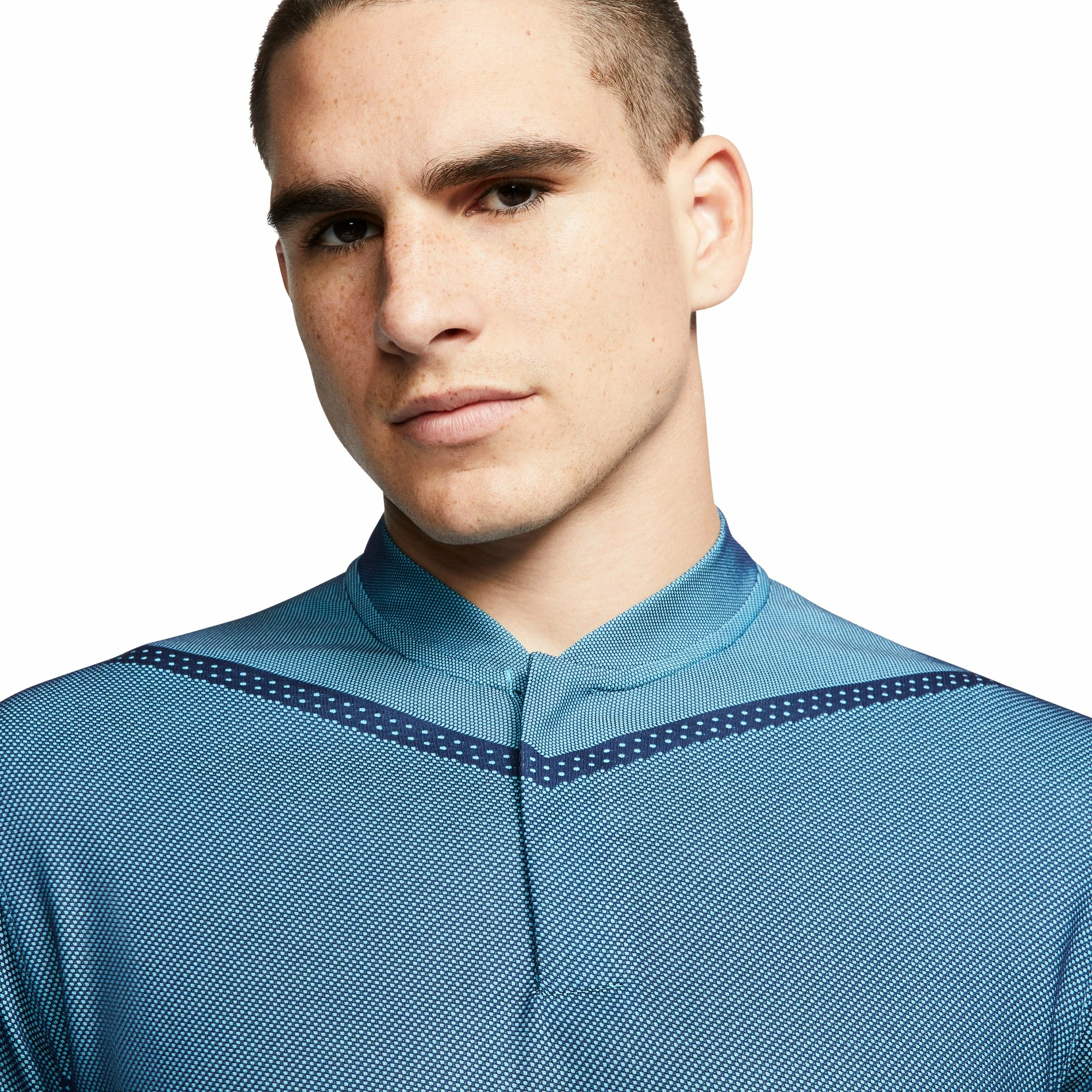 The Nike Dri-FIT Tiger Woods Blade Polo brings you the pinnacle of performance featuring a brand new makeover. This polo has strategically placed seams and a breathable fabric that combines a Dri-FIT technology that will keep you dry and comfortable during your round. The rolled back shoulder seams and hem vents let you move freely while still keeping your polo tucked in. The Blade polo pays homage to the Nike Windrunner with its 26-degree Chevron print and a TW logo on the back of the neck gives signature Tiger Woods style. This polo has gotten a modern re-design with a sleek, hidden snap-button placket and a blade collar that lies smoothly against your neck to keep you focused.
