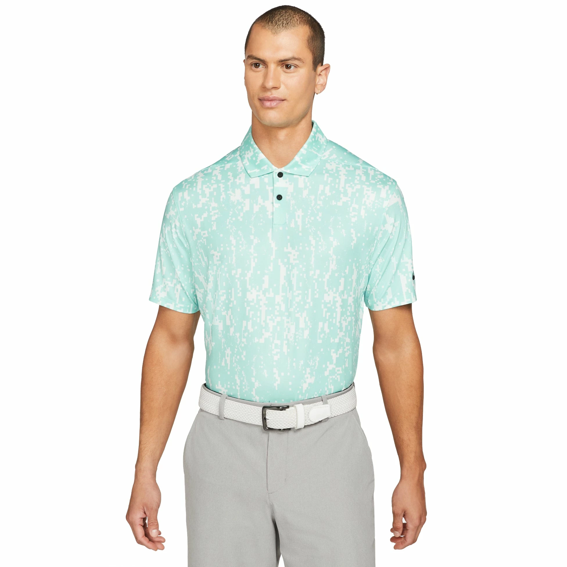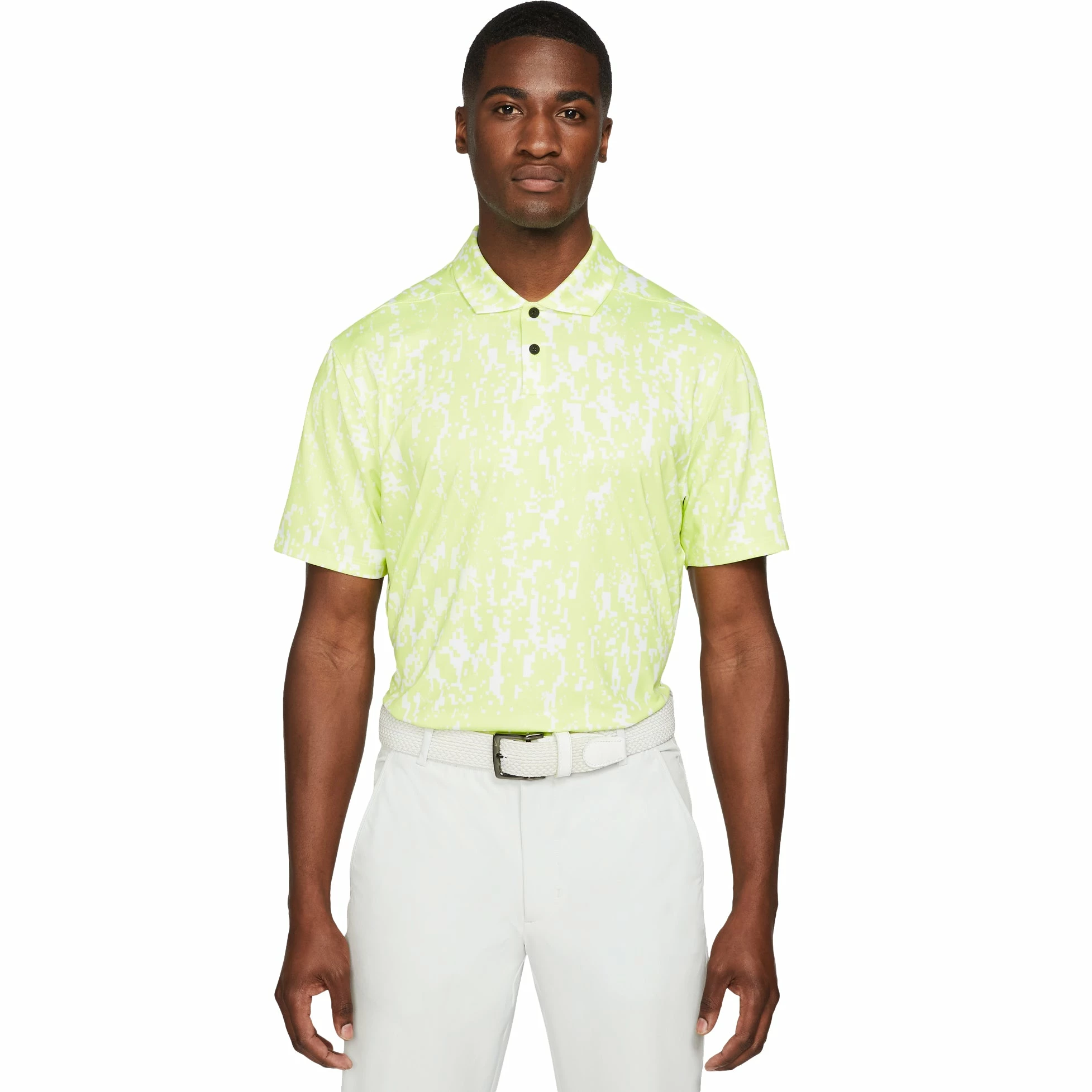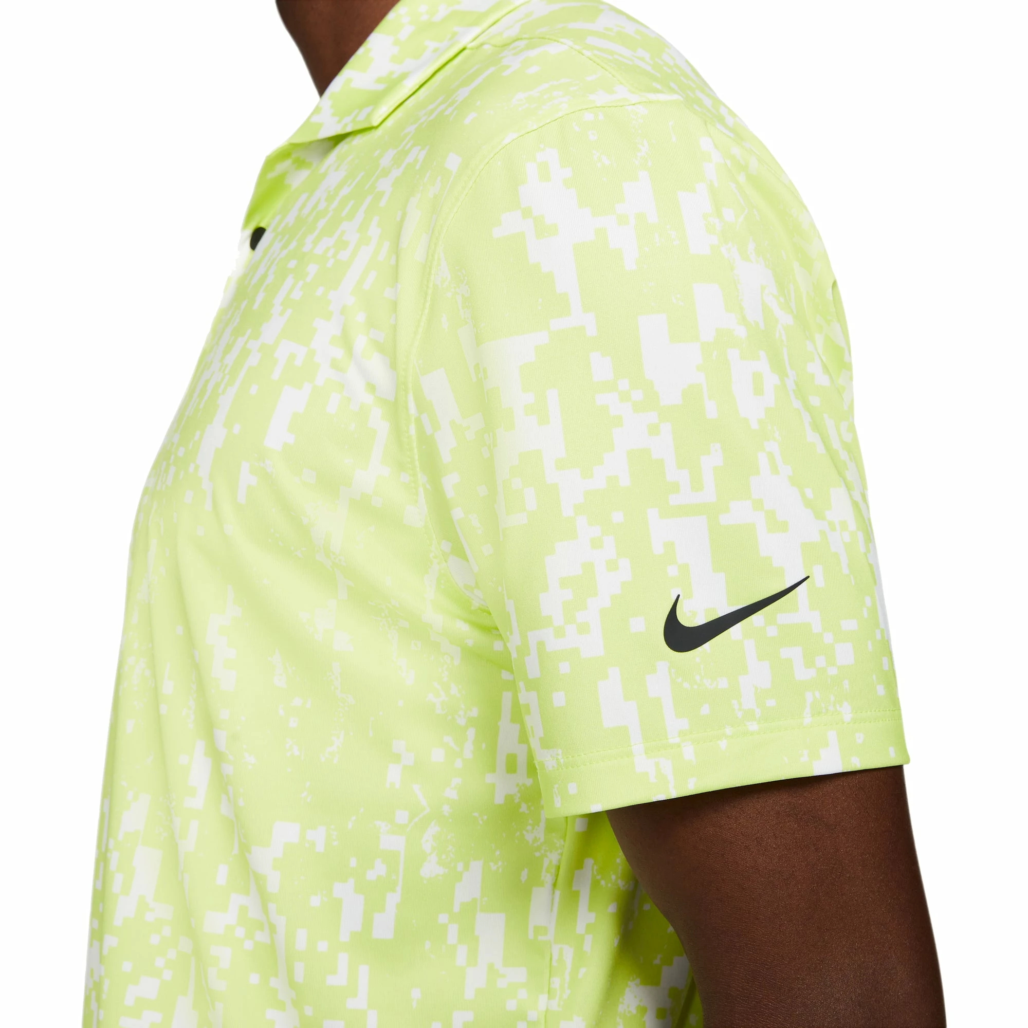 Get performance for the course with the Nike Dri-Fit Vapor GRFX Golf Polo. This polo provides golfers with breathability and stretch to allow you to play your best and the camo-like print is inspired by the Torrey pine tree. This polo is built with a knit fabric that is soft and stretchy and features Nike Dri-Fit technology that keep you dry and comfortable throughout the round. A mesh insert at the back of the collar offers added breathability and hem vents let the polo drape nicely when untucked or keep it tucked-in should you go that way.