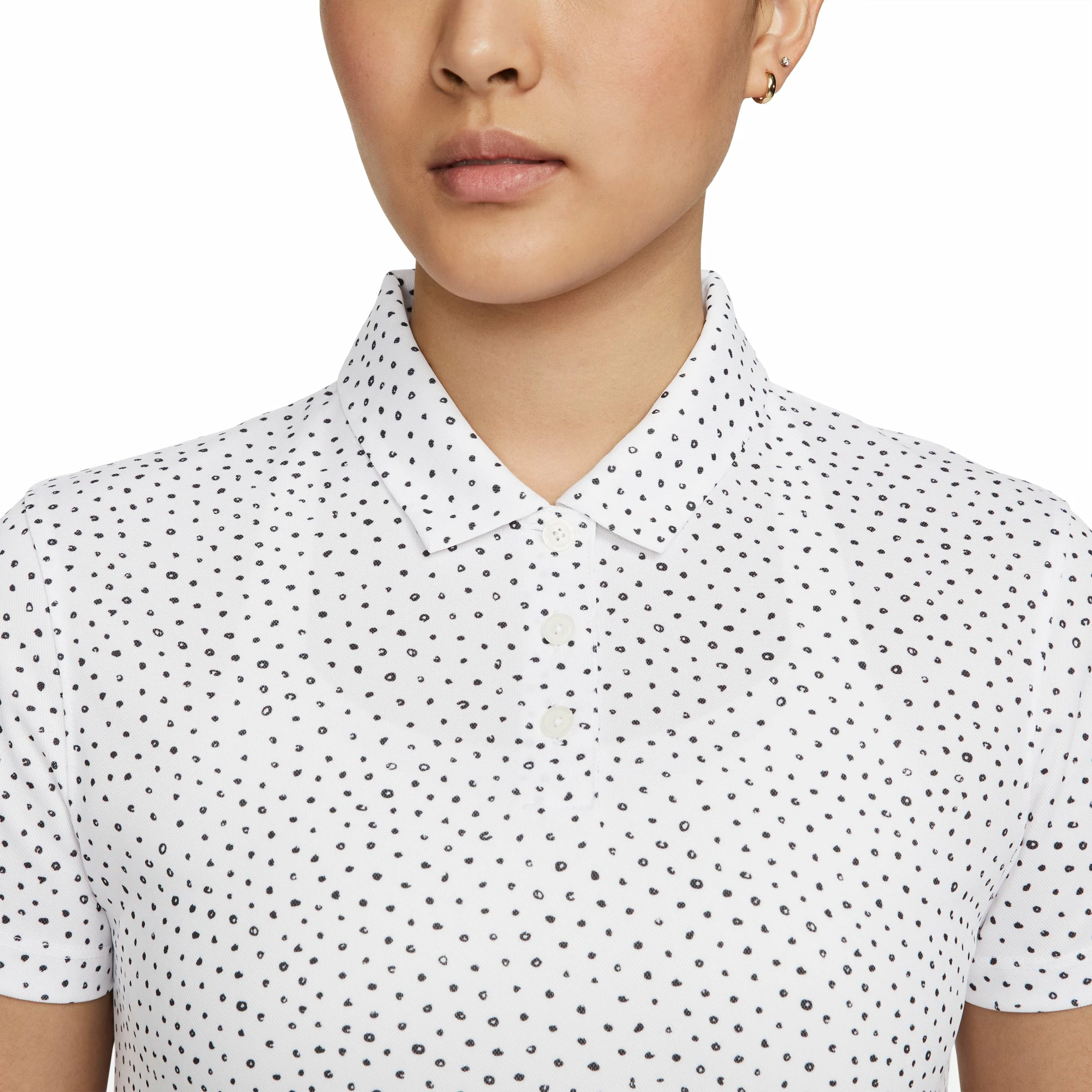 Update your golf wardrobe with the stylish Nike Dri-FIT Victory Golf Polo. This polo is built with a stretchy, breathable knit fabric that features Nike Dri-FIT technology that pulls sweat from the body to keep you dry and comfortable throughout the round. The subtle animal print provides a touch of style that will have you looking good from the course to the concrete.