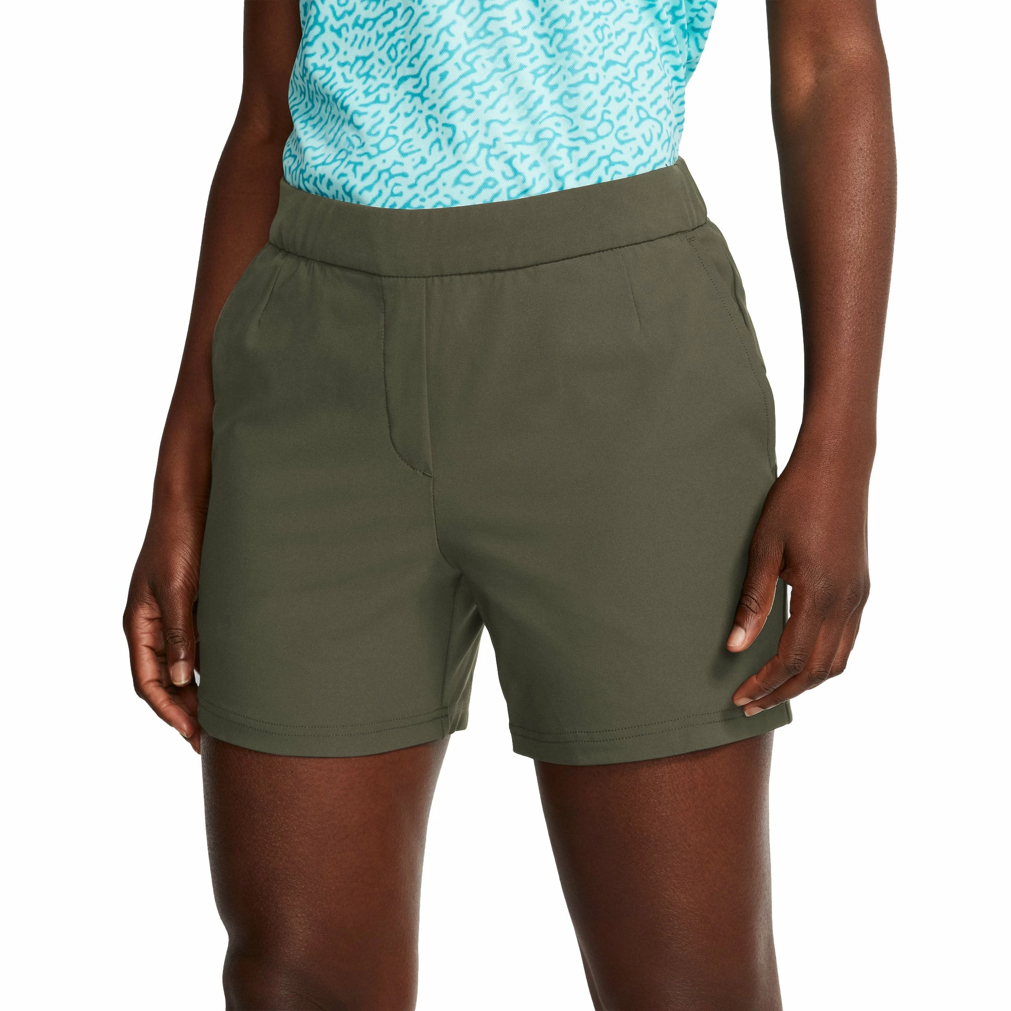 The Nike Flex Victory Golf Shorts are a pull on design that are made with Nike Flex fabric that stretches with your body to keep you comfortable out on the links. The flat, elastic waistband lets you adjust the fit and a faux fly front adds some style to these shorts. There are side and back pockets that provide ample storage for your tees, scorecard and an extra ball or two and the Standard fit adds to the comfort of the Victory shorts.