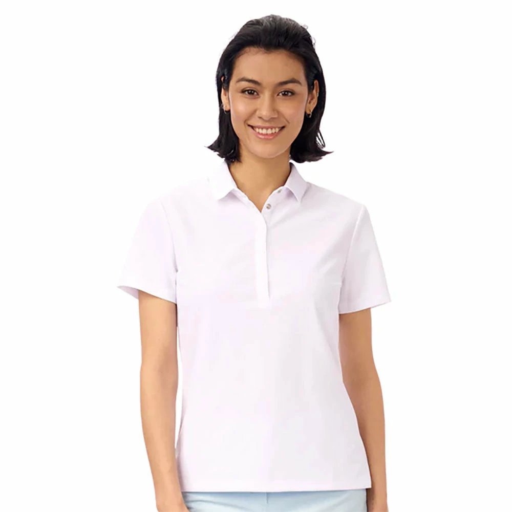 Get classic styling with the NVO Brenna Womens Golf Polo. This polo will feel soft to the touch and offer comfort and versatility that fits your lifestyle. It features a five button placket, knit collar, and a reflective logo for added visibility in low light conditions. Moisture wicking and quick dry fabric will keep you cool and dry while UPF 40+ protects you from the sun’s harmful rays.