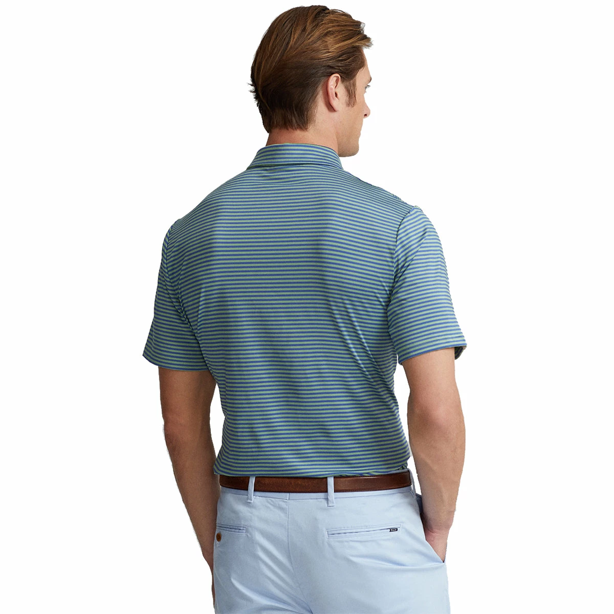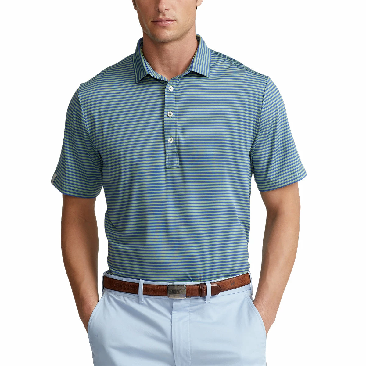 Add style to your golf wardrobe with the RLX Ralph Lauren Lightweight Airflow Feed Stripe Golf Polo. This golf polo is built with a moisture wicking and breathable material that pulls sweat from the body to keep you dry and comfortable throughout the round. The cut and sewn collar interfacing provides structure and stability to the collar shape and the striped pattern and RLX tab on the right sleeve work together to have you looking good on and off the golf course.