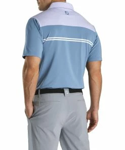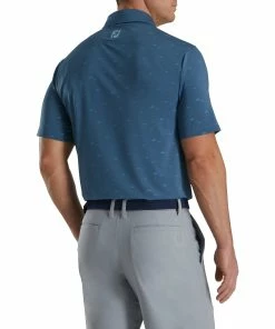 FootJoy Athletic Fit Lisle Golf Print Ice Blue Mens Golf Polo