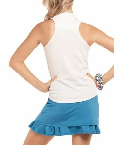 Lucky In Love Dreamin Of Aegean White Womens Sleeveless Golf Polo