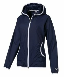 Hit the links with no fear on windy, drizzly days when you have the Puma Zephyr Golf Jacket. This jacket is built with WINDCELL technology that protects you against windy conditions while also keeping you warm and dry. This jacket is woven, and water resistant that feature cute, gathered pockets with color contrast on the pockets, zipper and hoodie and the cuff binding. The feminine features will also have you looking good while out on the course.