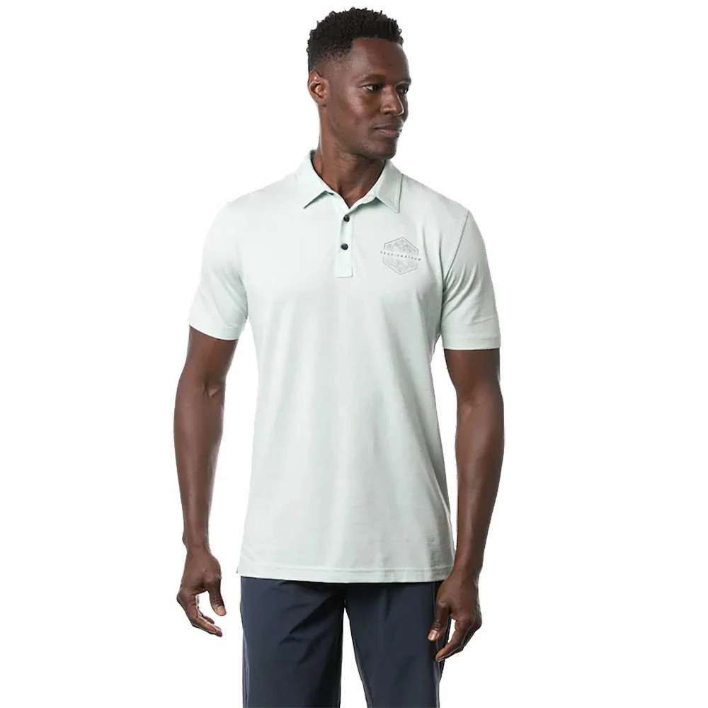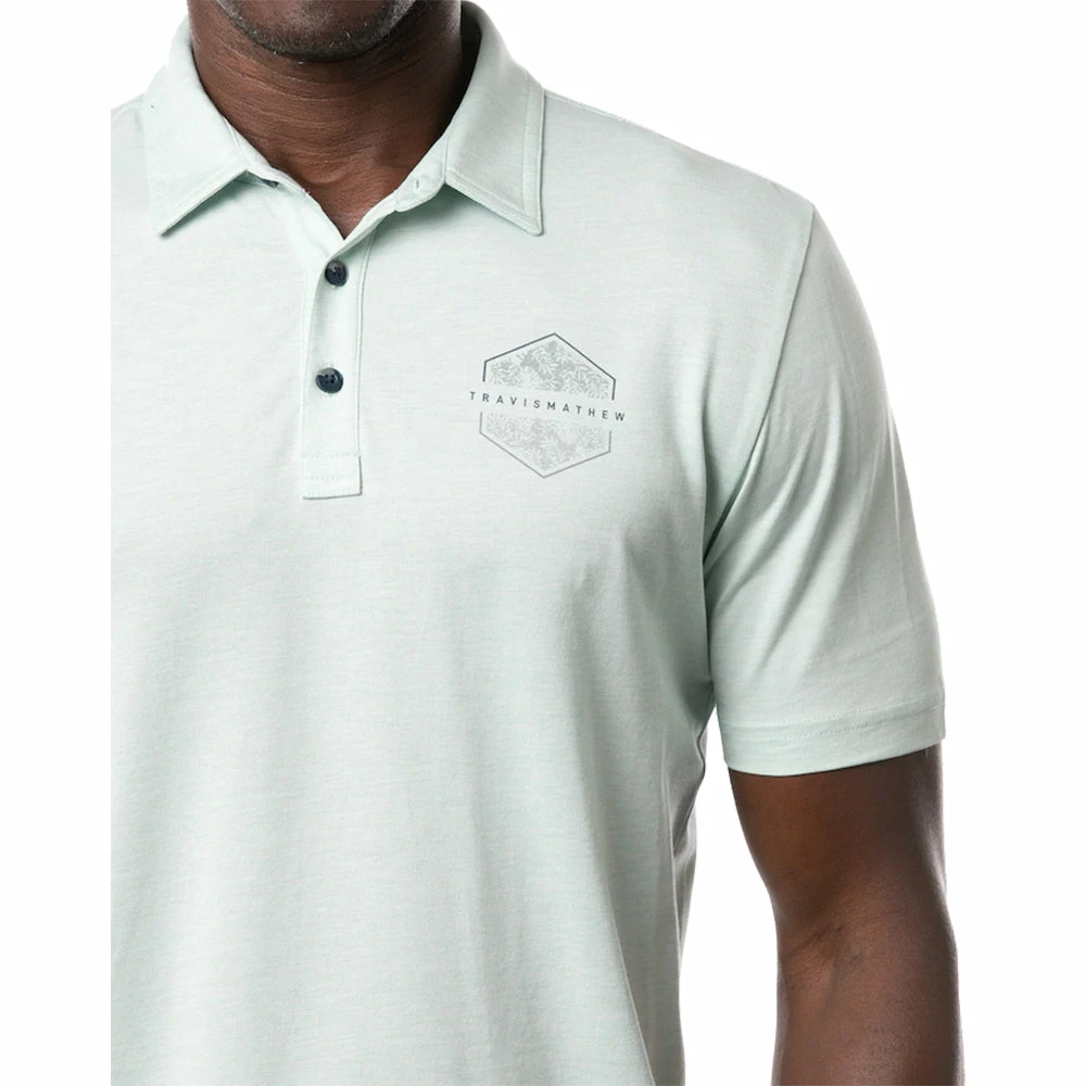 Add a slice of paradise to your golf wardrobe with the TravisMathew Sun Rays Golf Polo. The Sun Rays is built with a cotton/polyester/spandex blend with an enhanced four-way stretch that provides supreme comfort throughout the golf swing. There are built-in collar stays that ensure the collar maintains the perfect shape for a stylish look. The floral hexagon graphic on the left chest and printed logo on the back yoke will have you looking good on and off the golf course and custom tricolor buttons provide an elevated look.