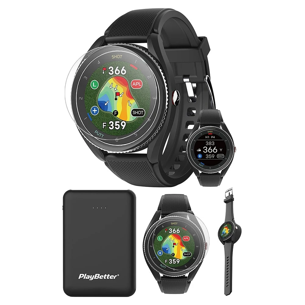 The full-color touchscreen provides yardages to the front/center/back of the green and offers advanced features such as Active Green (improves accuracy), V-Algorithm 3.0 (slope calculation), green undulation (indicated with heat map and arrows show break direction), putt view (shows elevation and distance to pin) smart green (touch pin-placement), course views (yardages to hazards and bunkers).