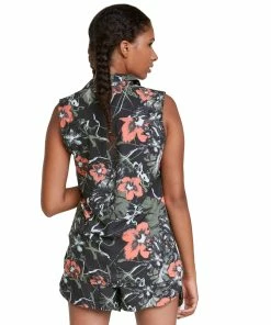 PUMA Golf Puma Nassau Black Hot Coral Womens Sleeveless Golf Polo