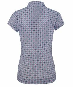 EP NY EP New York Split Mock Print White Multi Womens Short Sleeve Golf Polo